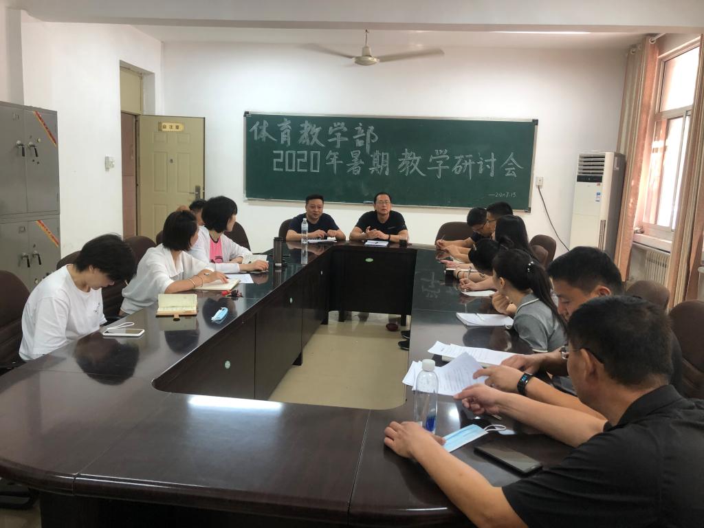 7月15日上午,体育教学部按照学院安排,在师专校区会议室召开2020年暑期教学研讨会,基础科学学院副院长崔浩及体育教学部全体教师参加会议,会议由体育教学部主任王忠波主持。